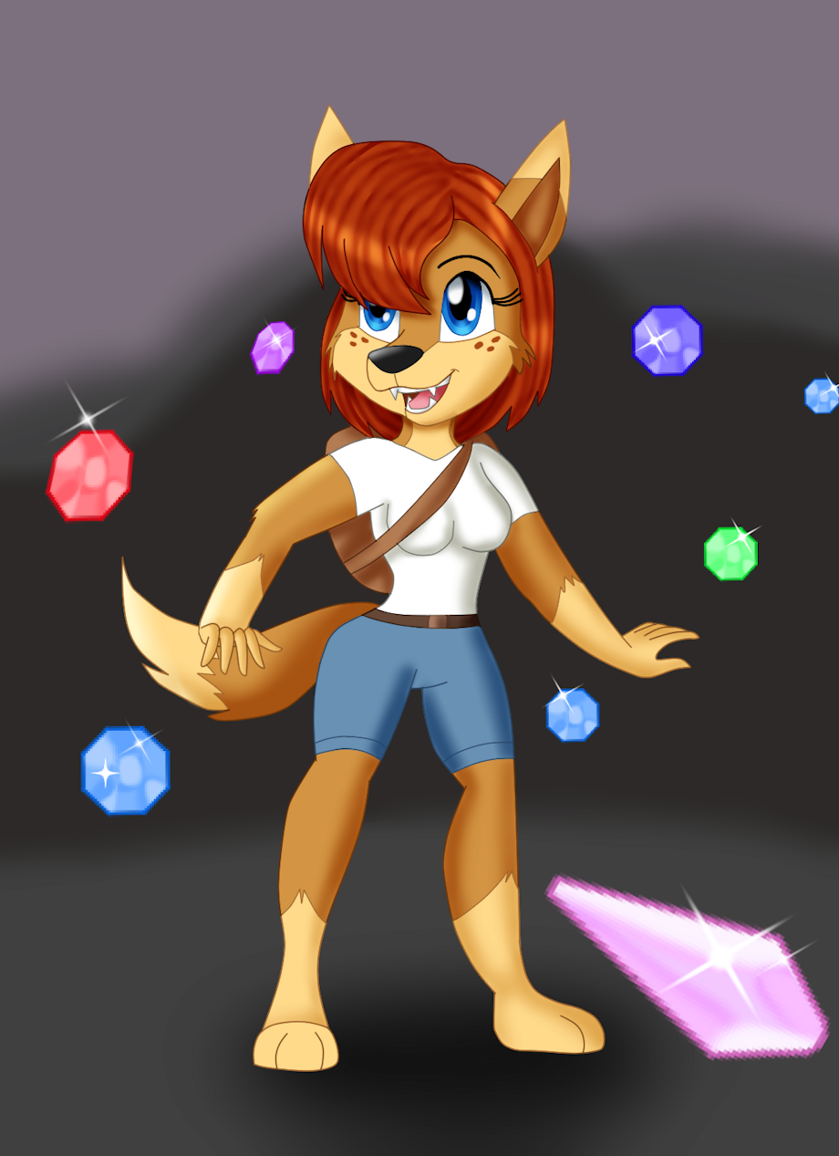 To celebrate the release of the newest Crash Bandicoot game, I decided to redraw one of my old Crash OCs. This is Bridget Dingo. She is a treasure hunter and a good friend to the Bandicoots. She's also a love interest for Dingodile. She is a smart, spunky gal with an Aussie accent and a love for adventure.