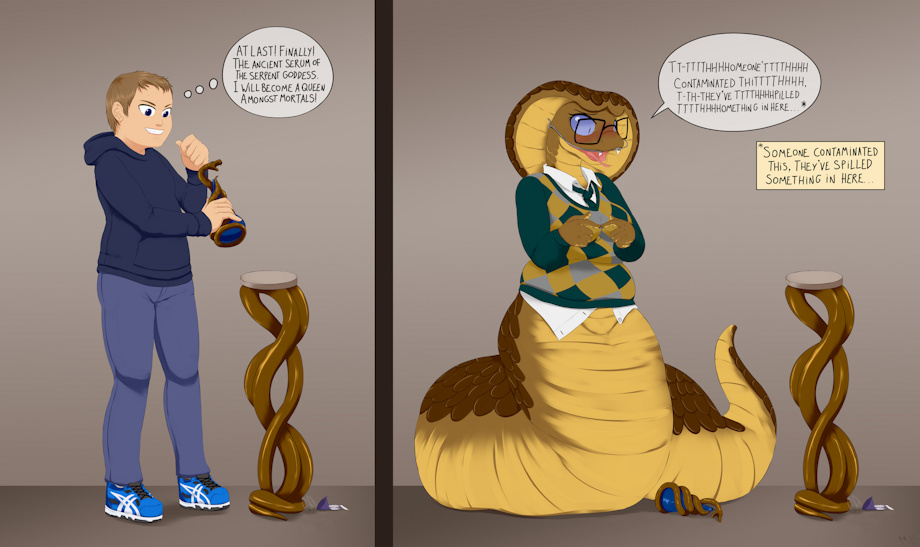 commissioned himself opening up a misterious snake shaped flask to turn into a lamia goddess, only