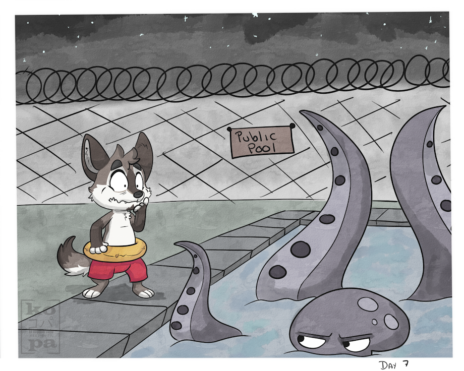 hi, day 7 "water terror" apparently this little boy was going to go swimming at night but he met a very strange visitor. Commission finished I hope you like it, you can help me if you like me to share, I will always thank you, thanks for everything a big hug. https://twitter.com/kopaloboso/status/13142481781039718...