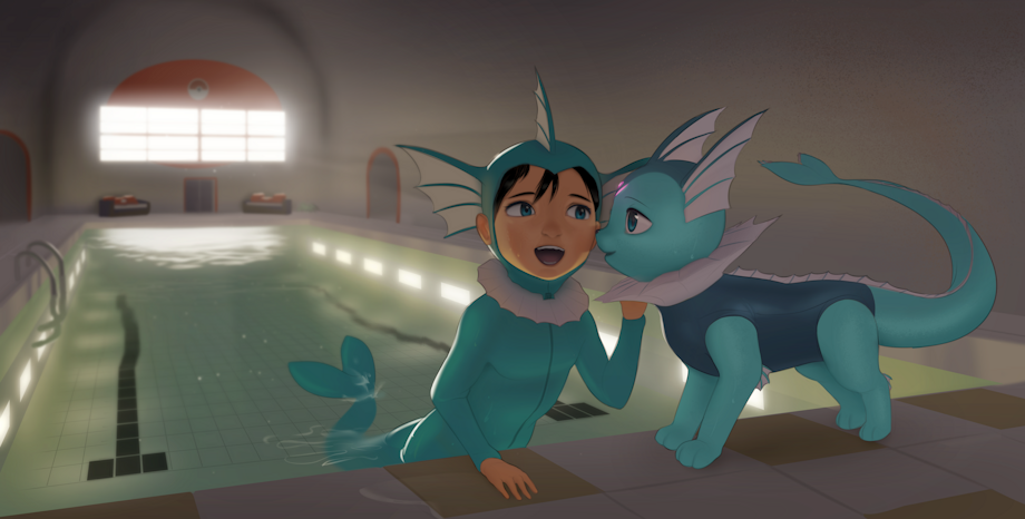 Vaporeon costume is lovely <3 It looks fun if 2 of them are swimming together XD Her buddy looks ver