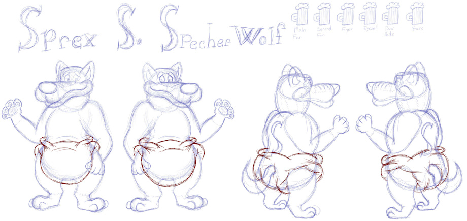 The first ref sheet is his main look which is a red flannel and diaper.