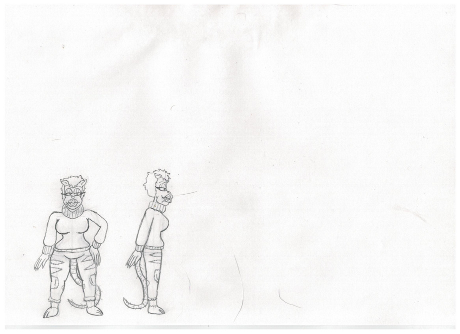“Hey kitty! Ya lookin’ pretty funny with ya head stuck in that wall. But I bet you’ll look even better after I kiss ya face off!”