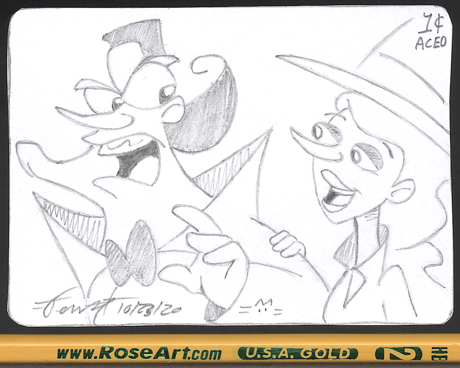 As for the pencil... I drew this with my Zephyr, and delineated the subject with this pumpkin pencil ...which has to be about THE worst pencil I've ever used (even worse than the Food Lion pencil)! This pencil is objectively cheap, in spite of its weight---it's drag is waxy and sometimes doesn't leave a mark behind. :P