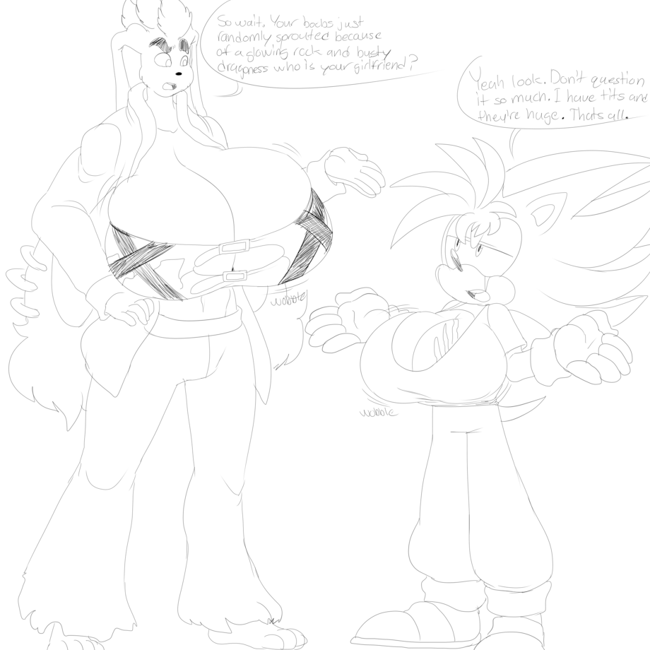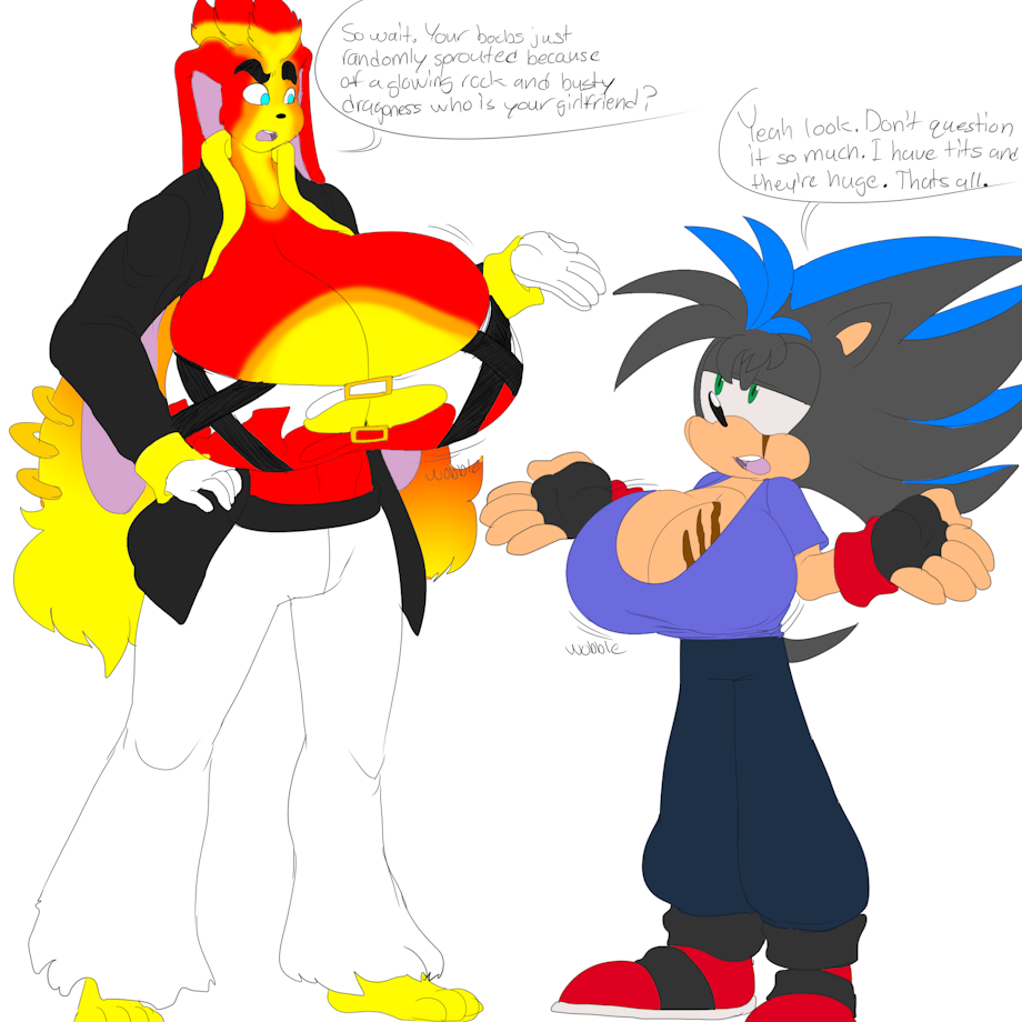 Satoshi explains about how he gains boobs to another bustyboi. Also Mobian meets Anthro.