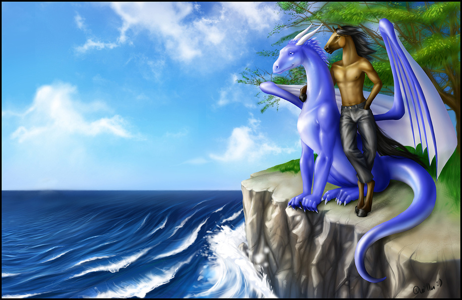 Hace dos años, en un dia como hoy, estabamos los dos sobre las rocas de la playa, un rompeolas apartado de la civilización donde practicamente estabamos solos ante la inmensidad, en ese mismo sitio fue donde nacio la idea de esta imagen, mientras observabamos el horizonte uno al lado del otro. Esta imagen representa el cariño que ambos nos tenemos y lo unidos que estamos, espero que os guste.