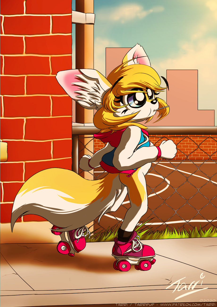Wanted to draw fox-moi again in skates, with a lollipop in my mouth, like it's the 80s. :3
