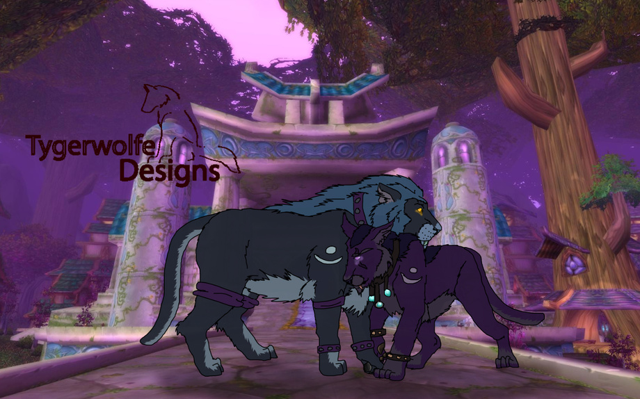 The background is a screenshot of Darnassus, the Night Elf (and refugee Worgen) home city from within the game.