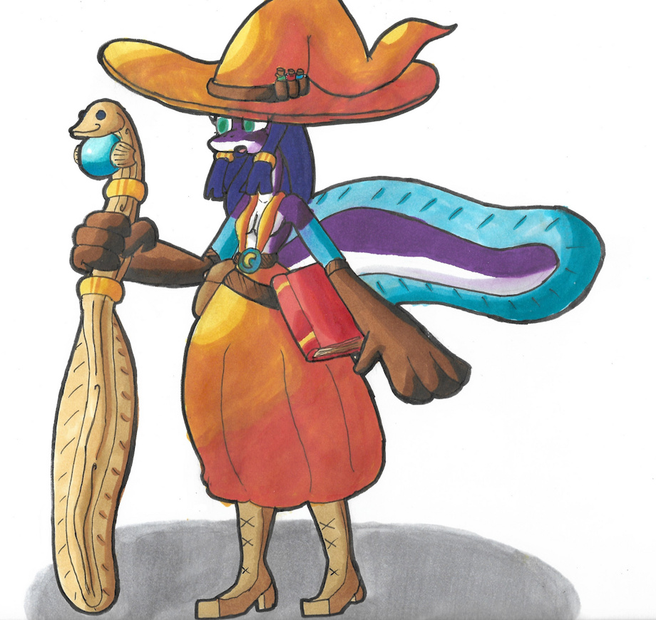 Wizard Eelaine. Drawn on paper with markers. She's a "Conjure Eel".