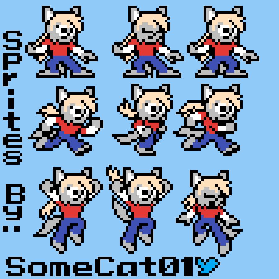 These are Seth's newer sprites. This time in tune with the palette limitations of the NES. Enjoy!