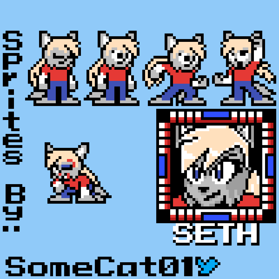 These are Seth's newer sprites. This time in tune with the palette limitations of the NES. Enjoy!