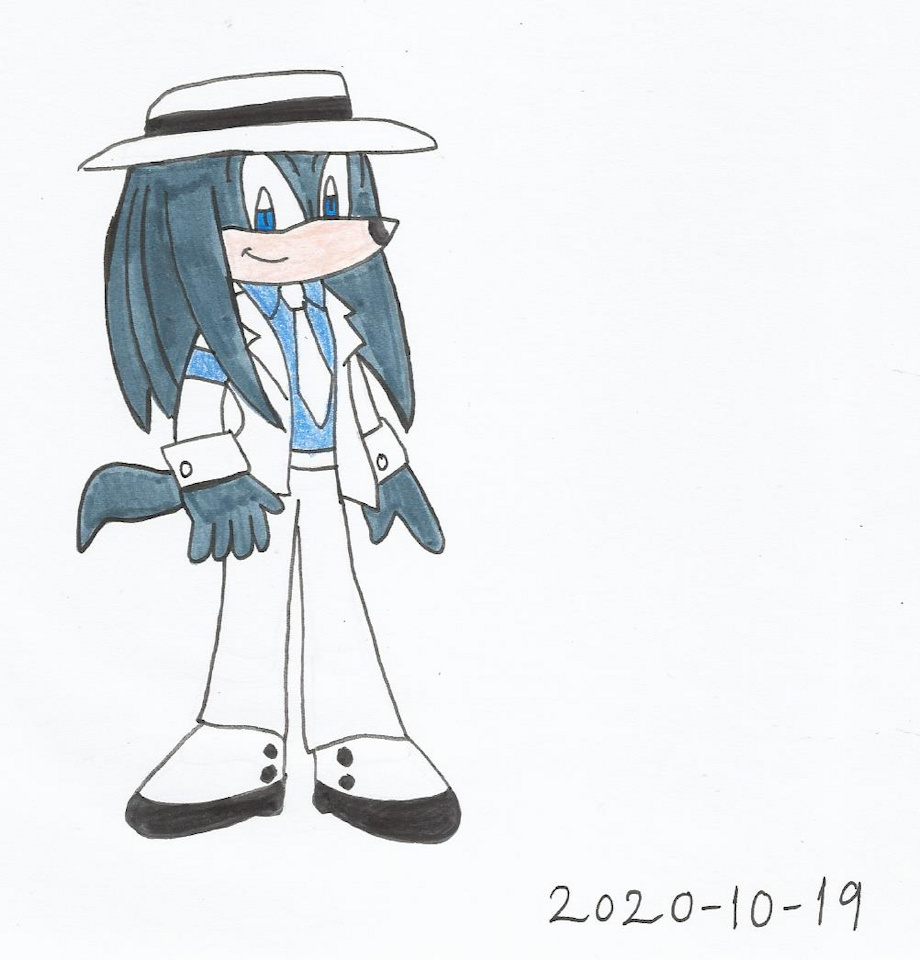 Here is Andrew in Michael Jackson's Smooth Criminal costume again. As part of halloween. Oops. I drew/colour the sleeves wrong.