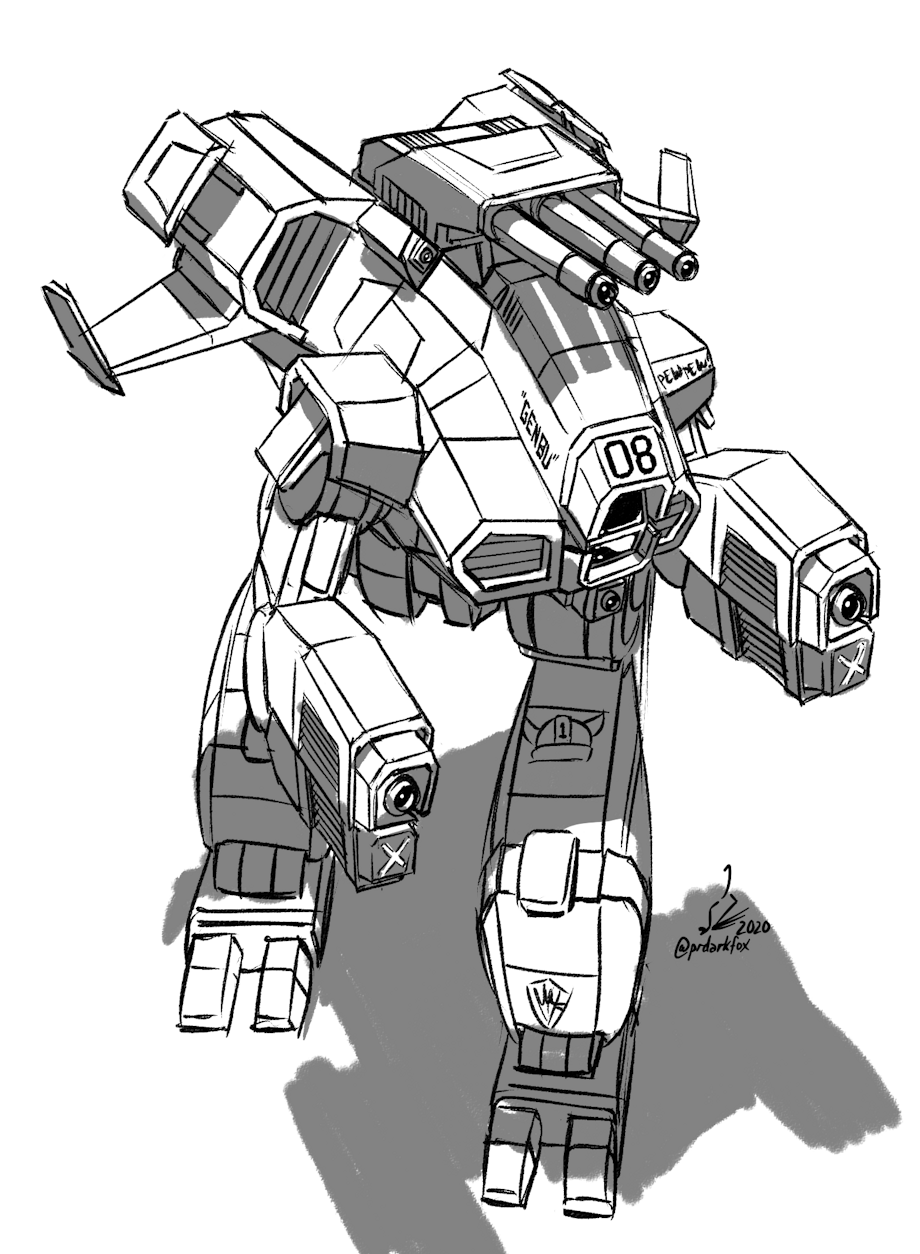 Heavy Class (weight unknown), AC/10, AC/2, 2 SRM-4s, 2 Medium Lasers, 2 Machine Guns.