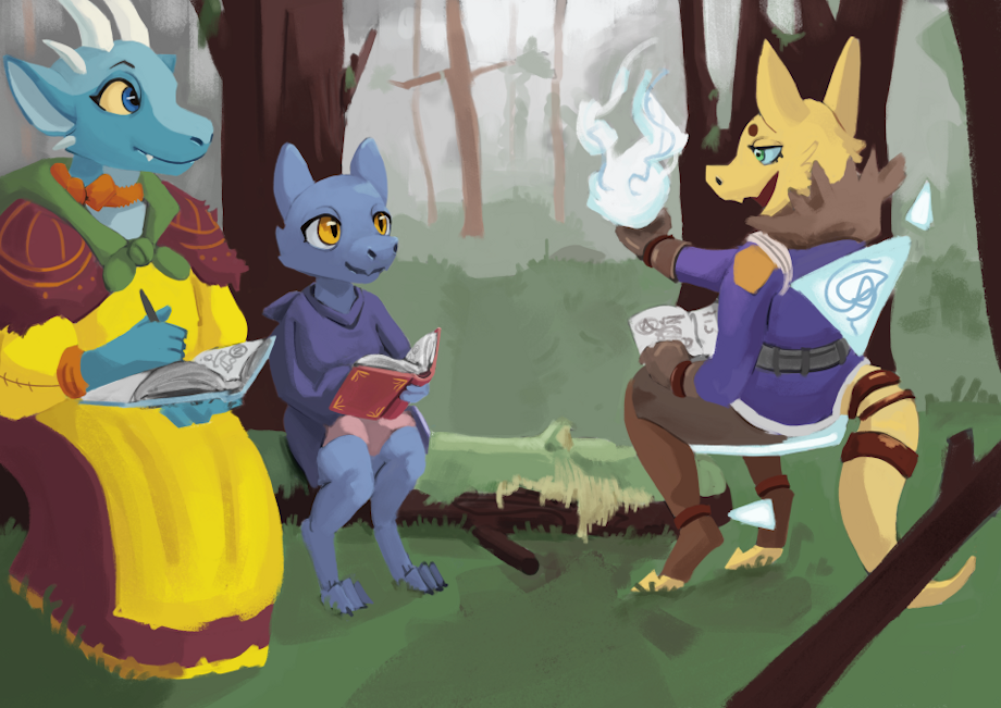 The Thunderblood Kobolds are nomad tribe with a large number of wizards in them. The power is knowledge. The new generation of wizards studies with a teacher wizard that is a master of an school of magic. Evocata teach Meri and Blue the principles of evocation.