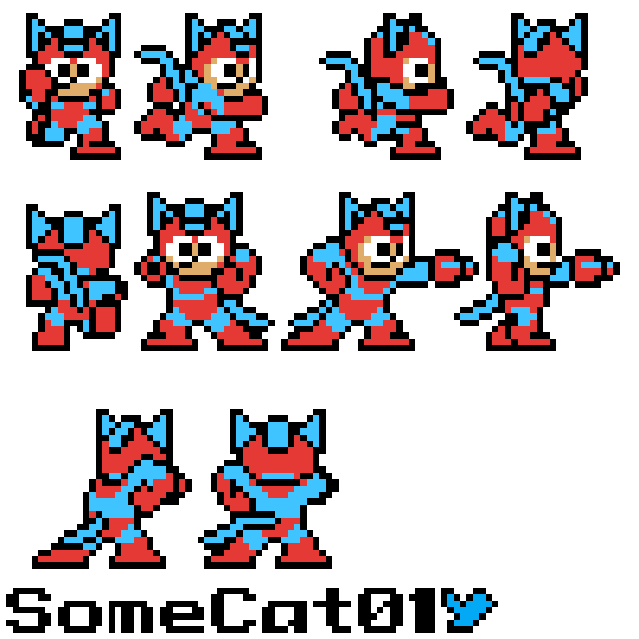 This is a skin I would use if I could play 8 Bit Death Match. Along with my personal fursona, there's three of my other OC's I created that I will make sprites for in another time.