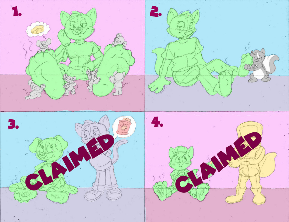 A funny few set of YCHs I made a few years ago and decided to add two new silly scenarios to the funny idea of stinky sock embarrassment XD