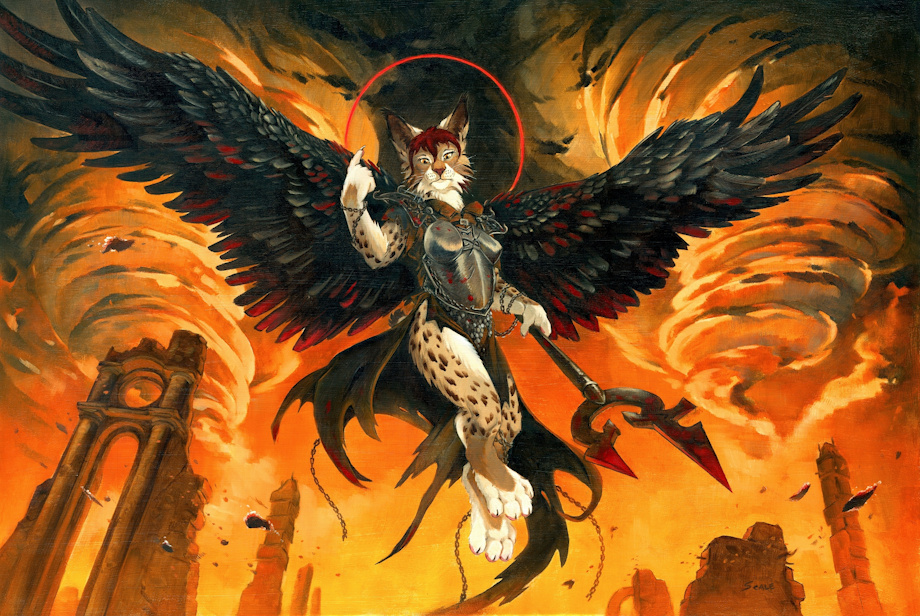 Title translation from Latin: "The stars inspire us, but they do not bind us." Zaire as a dark angel, an adaptation of Avacyn the Purifier from Magic the Gathering.