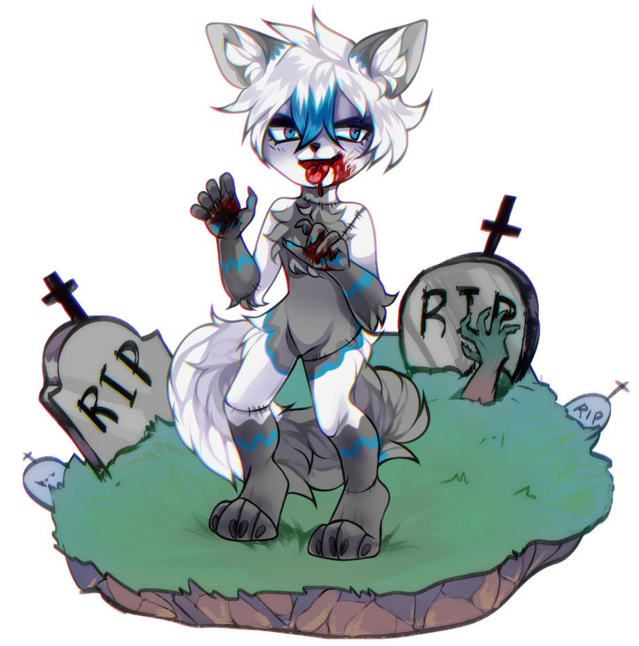 ~ Zephyr enjoying Halloween as a zombie, walking around his makeshift graveyard, body full of fake scars and mouth full of fake blood, instilling "fear" in those who come near. Well at least he is not being his usual reaper. Happy Halloween! 🎃 ~