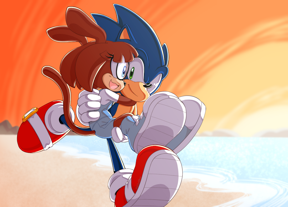 Sonic and Sarah's OC- Sunny the Cat having a date by the beach!