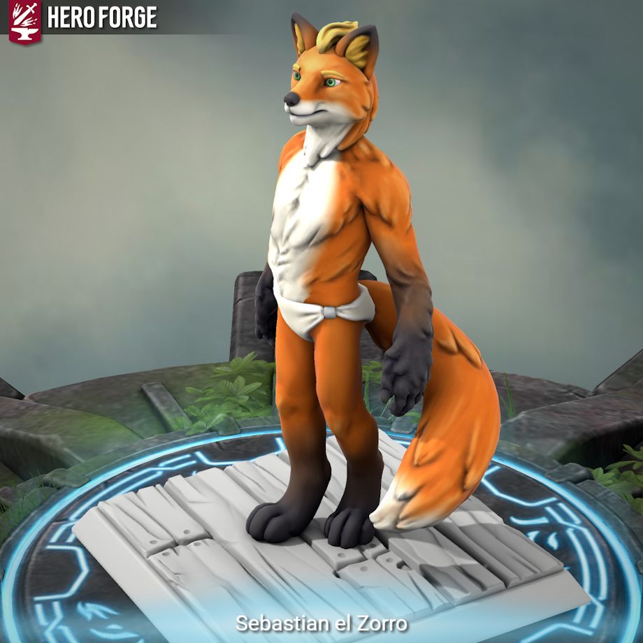 When i did my fursona in hero forge i found a clothing that looks like a diaper so first i took the screenshots with his boxer and then with this "diaper"