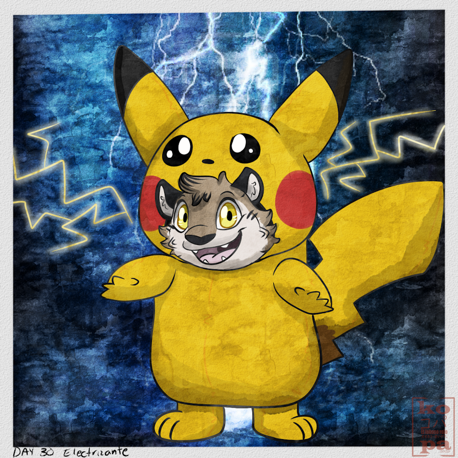hi day 30, electrifying. this friend wanted to be a pikachu like the costumes in Japan. I hope you like a big hug