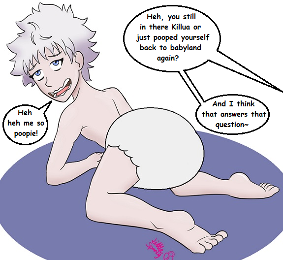 Killua's days of being a big boy and WAY behind him.