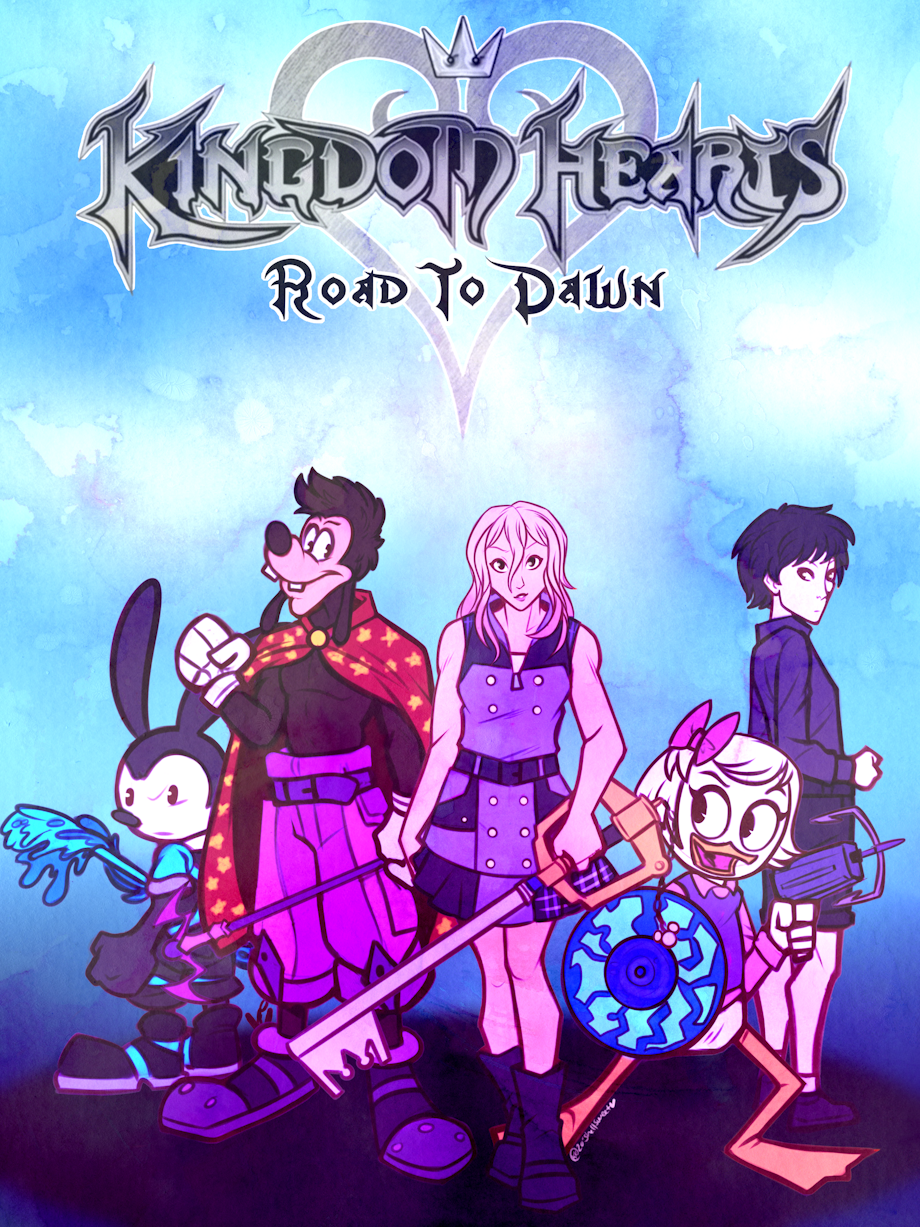 Something I commissioned from Shellsweet of an Kingdom Hearts spin-off I came up with. The new main girl is named Hikari and the boy on the right is her brother Noboru. Featuring Max Goof and Webby Vanderquack as Hikari's party members and King Oswald Rabbit on the left.