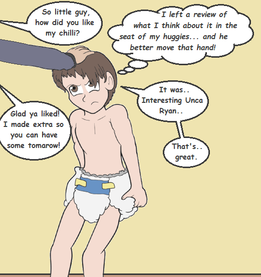 In the after math of Ryan's chilli, Malcore is on his last diaper and has to wait till daddy gets back with more, and Mommy got called into work.
