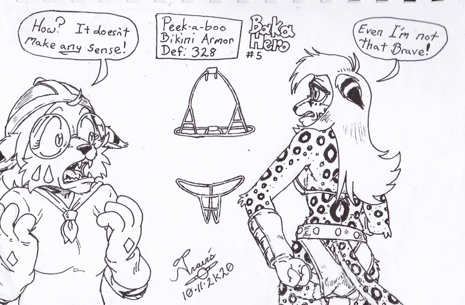 The hero and the mysterious OP Peek-a-Boo bikini armor.