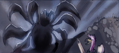 Jasmine was the first to fall. While travelling through a trail of giant spider webs, a huge arachnid ambushed them out of nowhere. As they tried to fend off its shots of sticky webbing, the flamingo was hit by a well-timed shot. They tried to save her but the spider was too strong, forcing them to retreat. After they lost the spider, they came back to look for Jasmine, only to find her webbed body gone.