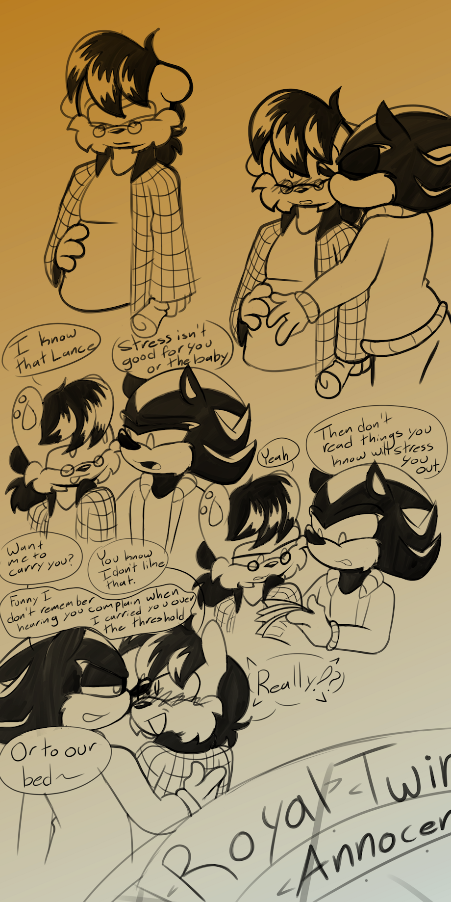 Sonic was very on his toes, making sure Ash was comfortable and safe,making sure he had everything he needed since everything was still so new to them Sonic didn't want to take any chances of Ash or their baby getting hurt, even surprising Ash by coming home alot earlier then expected.