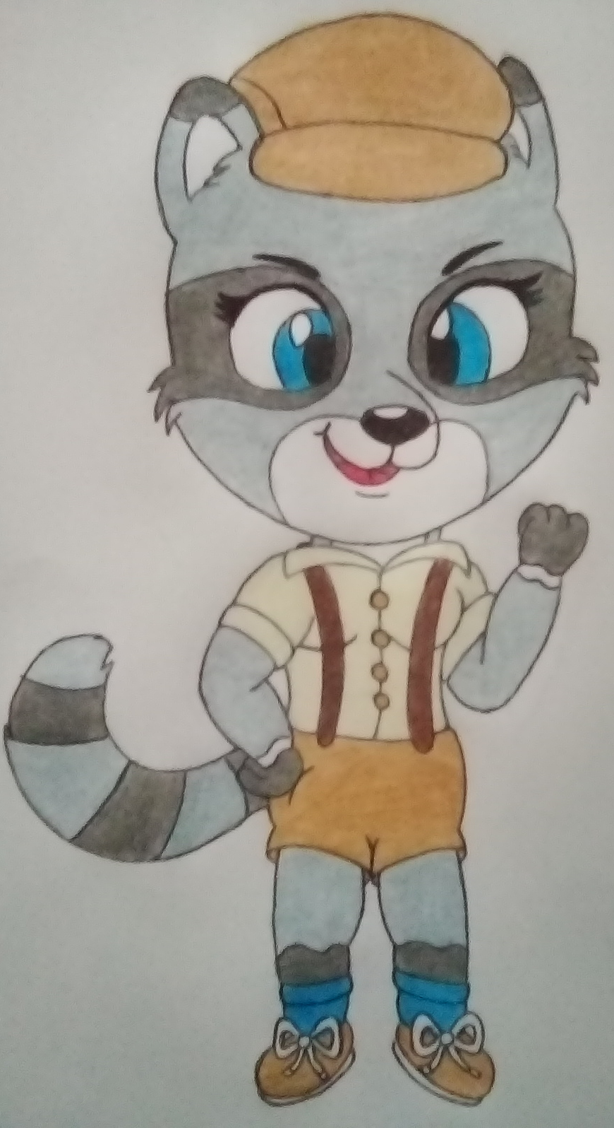 This is Martha, she is the mother of Scout the Raccoon, as you can see by the similar attire. She was a mechanic that helped out in the army of her home world building aircrafts and such. After the war had finished, she had moved into photography as a passion of hers, but it on call whenever she needs to serve her city. She had Scout brought to her by stork during the war and takes care of him, to which he wants to be just like her, wich couldn't make her more happier.