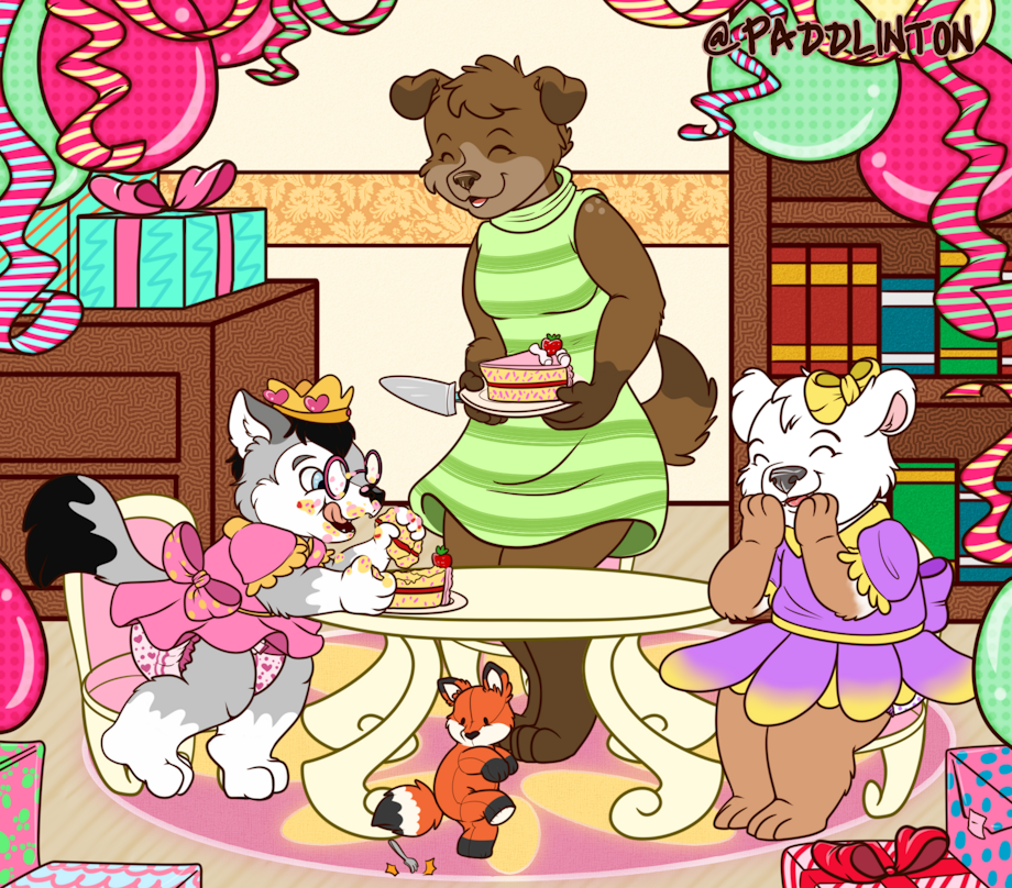 Looks like the princess is pretty hungry for her birthday cake, maybe that to forget the birthday spankings, or get faster to the gifts, or both...