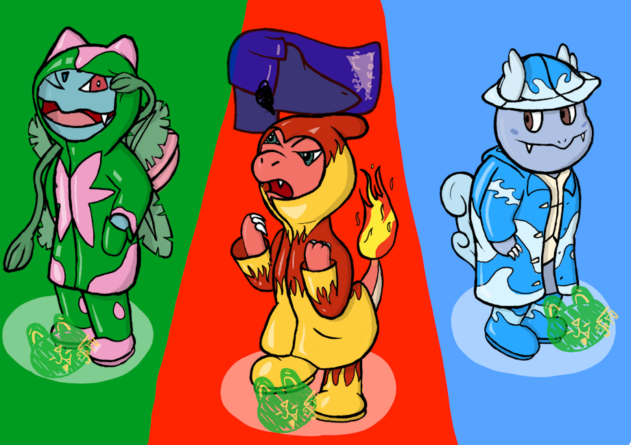 Ivysaur, Charmeleon and Wartortle are from Pokémon (Nintendo, Game Freak)