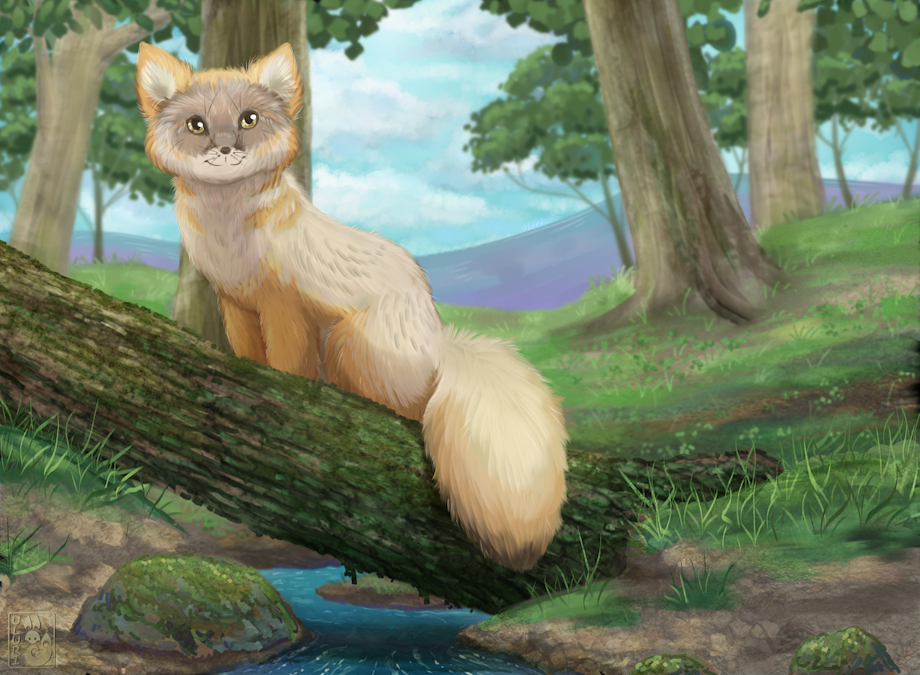 With this piece, I really enjoyed working on the mountains. I was playing around with another oil paint tool in corel while I was making them. I also really wanted to draw a fox pouncing at something in at least one of the artworks, and this was it. Wonder what his prey is.