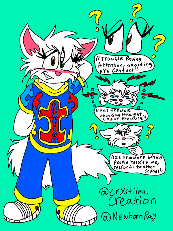 I may have said this a few times or kept it personally to myself, but I do actually have Autism. I have a very mild version of it and here are the few things it does to me. I usually don't look directly into people's eyes, can be unaware when someone's talking to me and I respond to other sounds around me, and having trouble thinking straight under pressure or in bad conversations and dramas. These are the few things that I usually do sometimes. So, I hope you all understand why I am this way and why I act the way I am.
