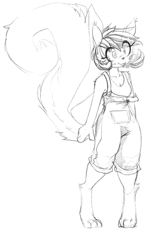 She's just such a cutie. I love the overalls look too. Don't think I can help from this side though, no way that tail is getting through without the fur getting caught.