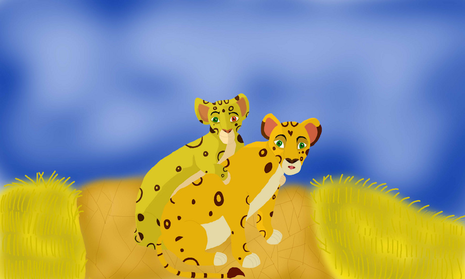 This is a drawing of Kiara and two of her cubs. her third and last cub isn't yet born.