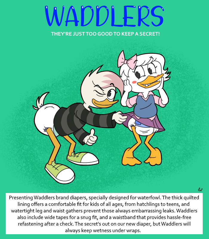 I guess the picture says it all. Someone wanted me to draw their two favorite DuckTales 2017 characters in a diaper advertisement, so that's what this is. I tried some poses I don't normally do, in a style I don't normally do, but the picture turned out fine in spite of that unfamiliarity.