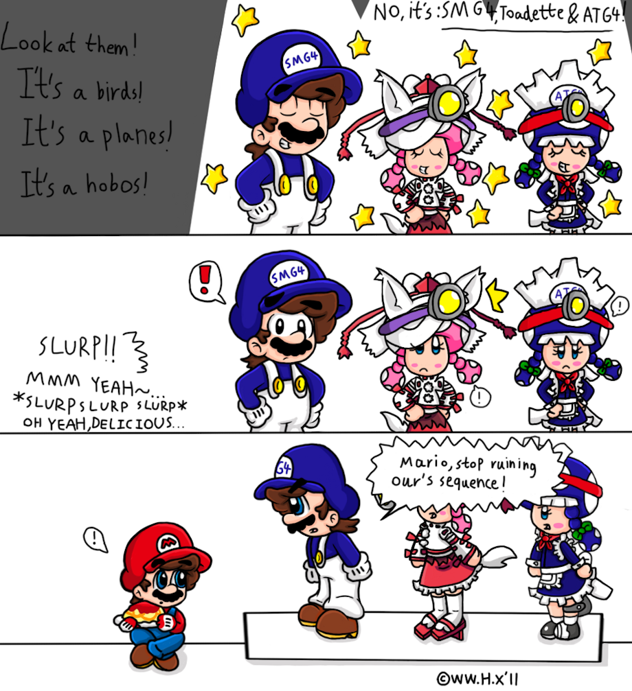 SMG4 (c) Luke Ledrdwichagul (SMG4 Official) Mario and Kirby (c) nintendo Another Toadette (Another kinopiko) and Dr.SMG4 (c) me