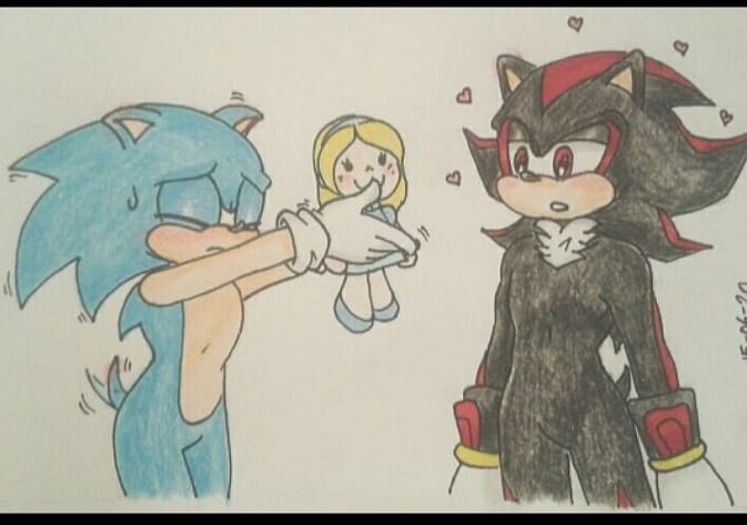 "Sonic... No debias..." Sonic mira al suelo esperando el puñetaso... El sabia que Maria era un tema delicado con Shadow. Pero en vez de sentir la ira de Shadow, labios suaves tocan su sien. Sonic inmediatamente levanta la cara en direccion de shadow pero solo capta un flash...