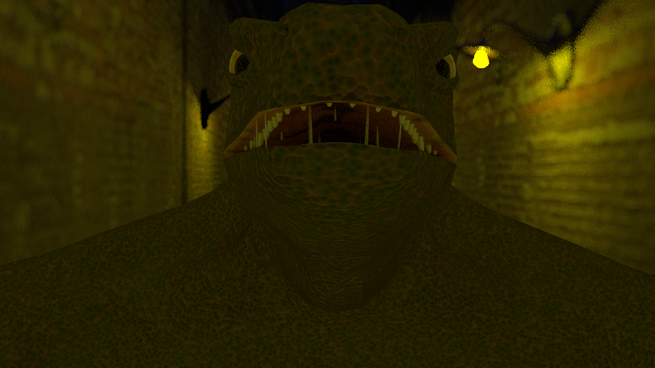 The background and monitor lizard were rendered separately then composited together. The background took 5 minutes 5.32 seconds to render. The monitor took 2 minutes 20.17 seconds.