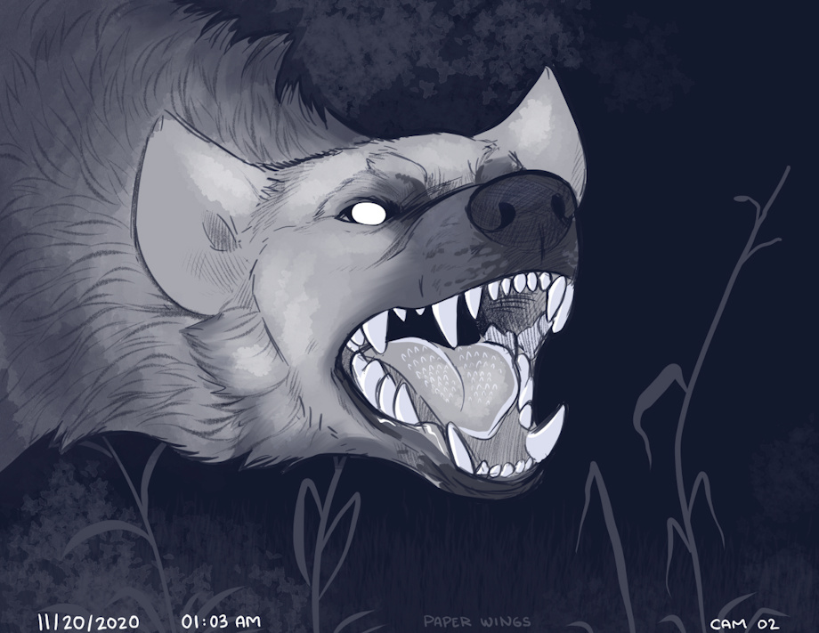 I've always thought night-time trail cam footage is such an opportunity for creepiness and shivers! A hyena seemed like a perfect canidate here.