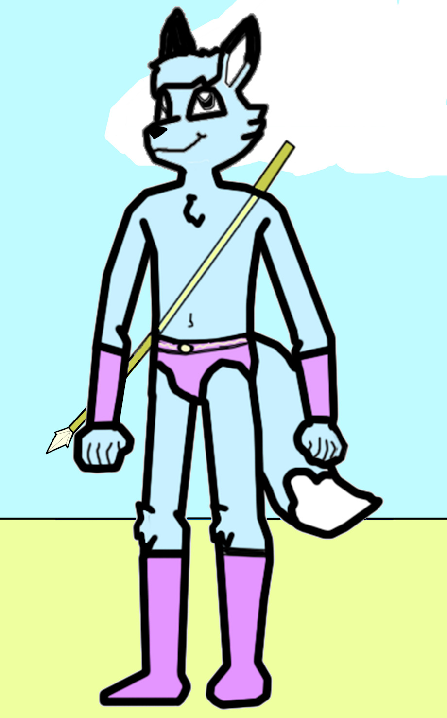Pic of my Blue Fox, Tenyx on fantasy adventure in only briefs that looks like undies from Versace.