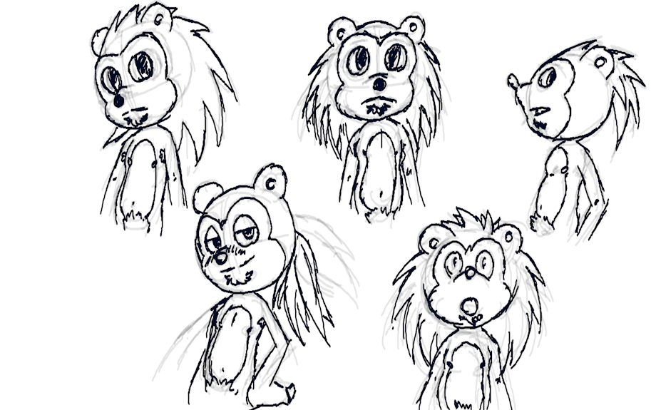 Bottom left is... I guess an alt style for the top middle where the quills are all in a ponytail. This style is my LEAST liked style, for one it would kinda look like Zero from the Megaman X series, it doesn't have that spikey hedgehog "feel" to the design like the others do, and it even kinda reminds me of a neck beard....