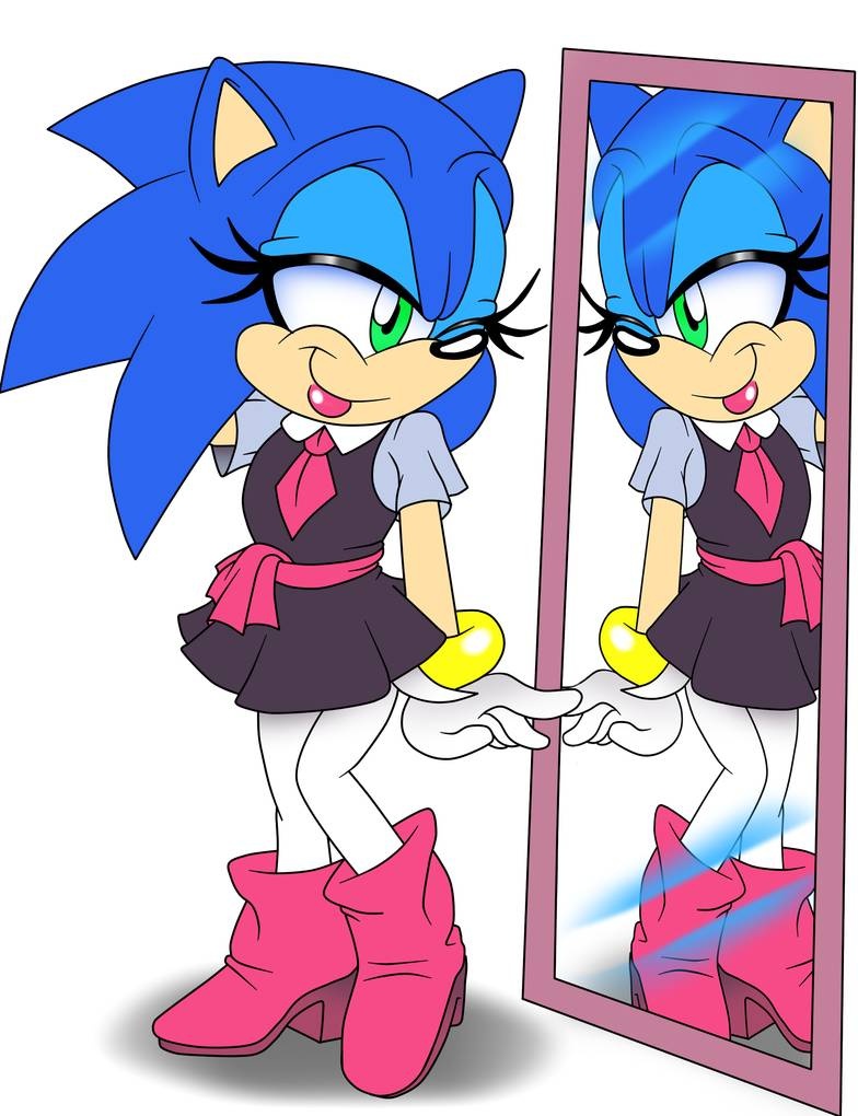 After trying Amy's main outfit...Sonic has started to look into her other outfits