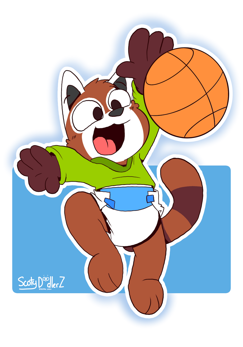 Ling Ling's having a good time playing with her basketball, going in for the slam dunk.