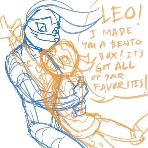 "LEO! I made you a bento box! It's got all of your favorites!" Mikey enthusiastically greeted his older blue-masked brother with a tackling hug.