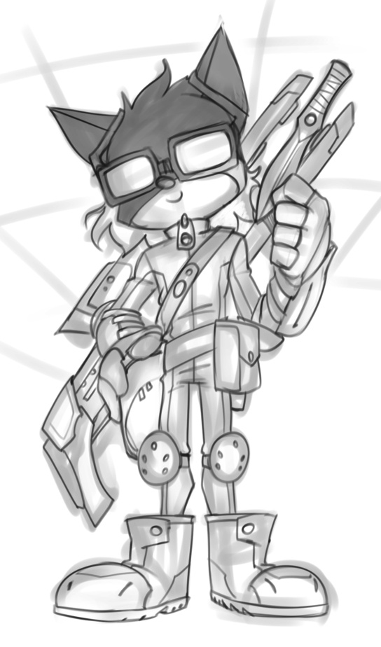 The scourge of Robots everywhere. With great strength, indomitable will, unmatched hatred, perpetual smile, a hidden gaze and complete silence, Gadget only has one thing on his mind. Kill all Robots. He's the second heavy hitter of Bunny's team but he cares very little for the Resistance or their goals. All he cares about? Kill all Robots. The resistance members themselves give him a wide berth. None of them fully trust him. Most fear him. When he's in the room, everyone scrambles to get out of his way. Their fear is misplaced though because his ruthlessness, unrivalled bloodlust and violent anger fuel only one thought in his mind. Kill all Robots. Or if someone convinces him that someone is a robot. These instances are quite... unfortunate. The more sentient Robots, like the mining drone Ore-Bot and the sentient encyclopedia Q-Bot (The Q stands for question), discovered true fear when they first encountered this seemingly lanky red wolf. He tore and ripped them apart, be it with weapons or his bear hands and teeth. He didn't stop. They couldn't make him stop. Not until he'd killed all robots.... well, at least in the base he was assaulting at least. The robots of the Regime all know him. They don't know or even care what his name is. To them he goes by a different name. A name that serves as a reminder of what he will do to them if he ever comes across them. To them he is the Codebreaker.