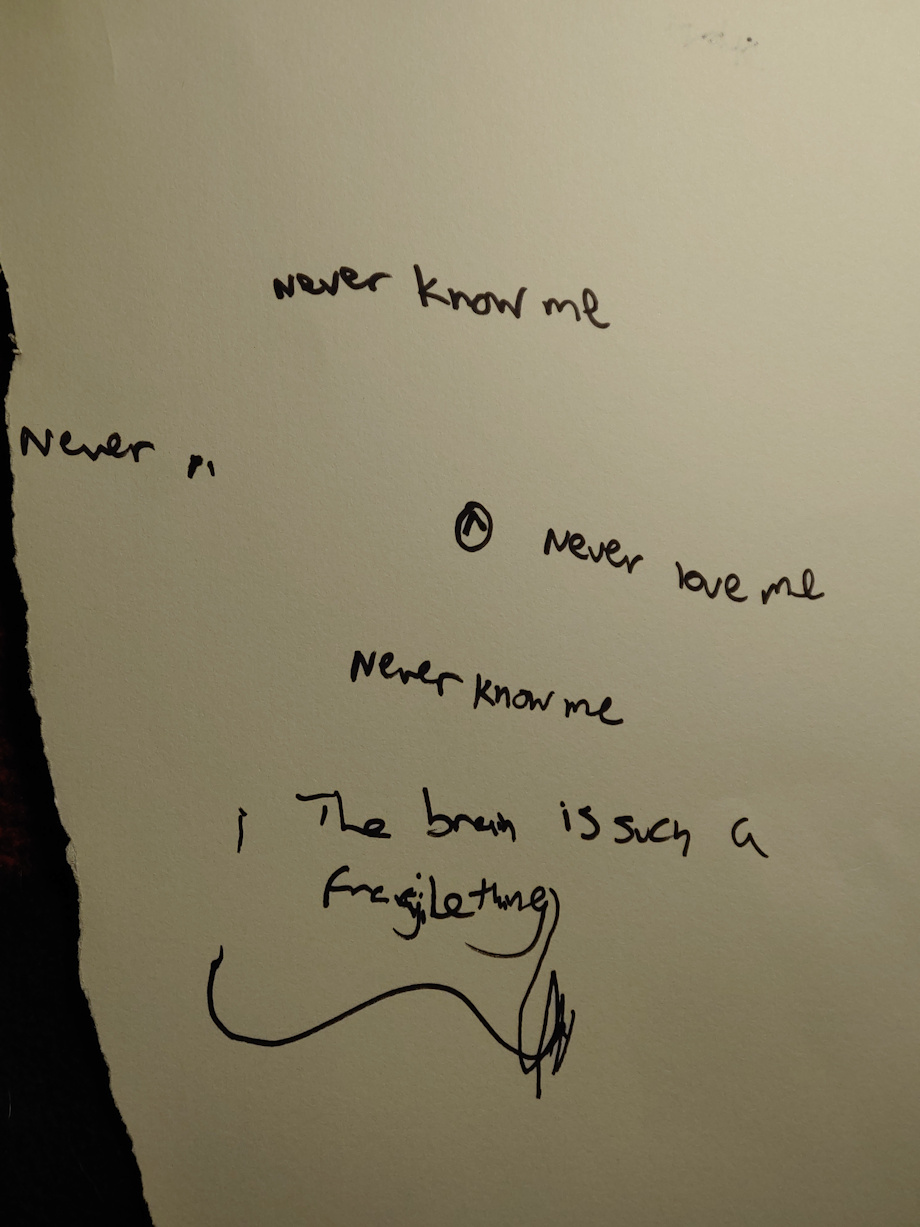20. never know me // never love me // never know me // never // the brain is such a fragile thing