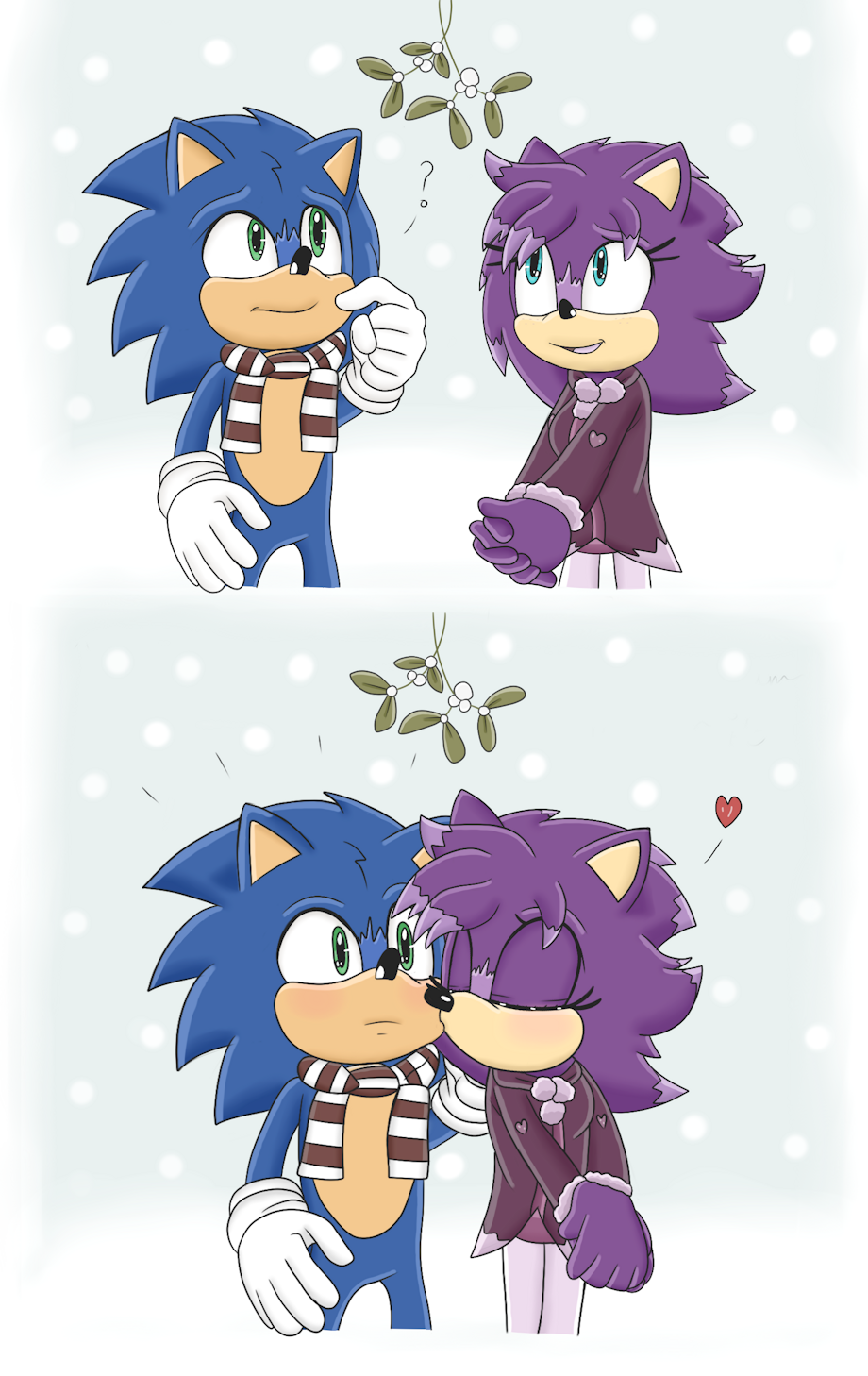 Kirana tells Sonic that it's mistletoe, but before Sonic can ask what it's for, she leans over and gives his muzzle a smooch~ <3 And THEN tells him that people normally kiss under it x3